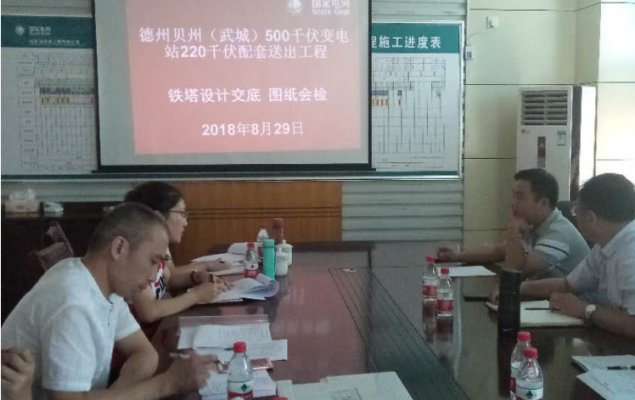 2018年8月29日上午,德州貝州500kV變電站220kV配套送出工程設(shè)計(jì)交底會(huì)在山東省電力公司德州供電公司會(huì)議室順利召開(kāi), 本次會(huì)議由業(yè)主項(xiàng)目部組織,設(shè)計(jì)單位、送變電公司、監(jiān)理方、施工項(xiàng)目部、鐵塔供應(yīng)商參加